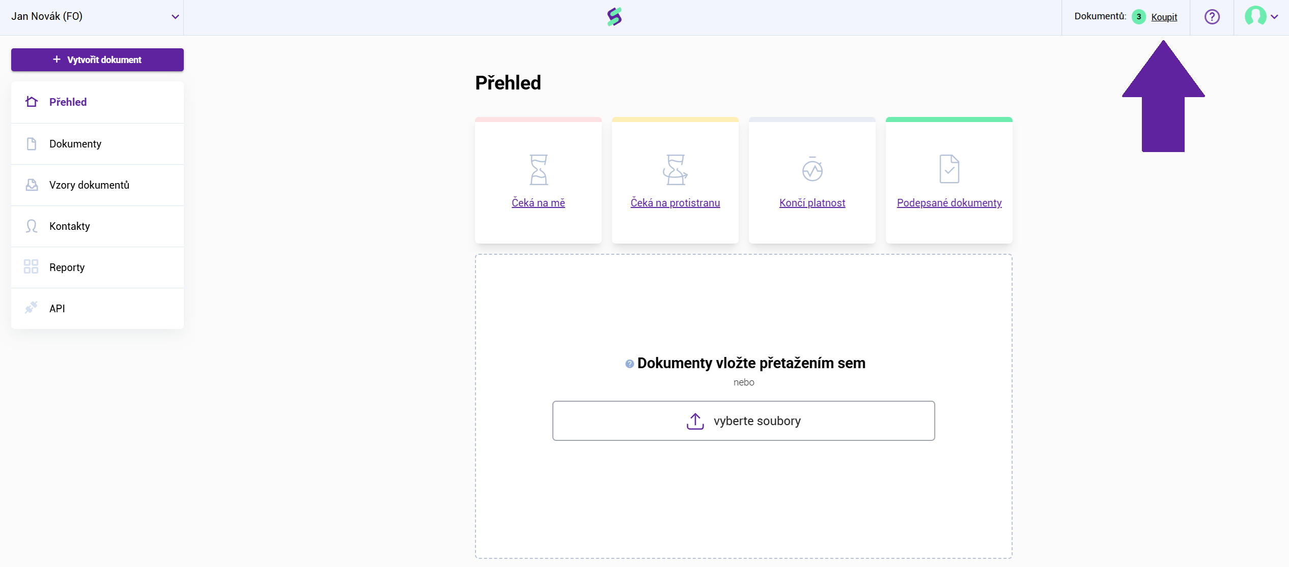 Na hlavní stránce Signi klikněte na tlačítko „Koupit“.